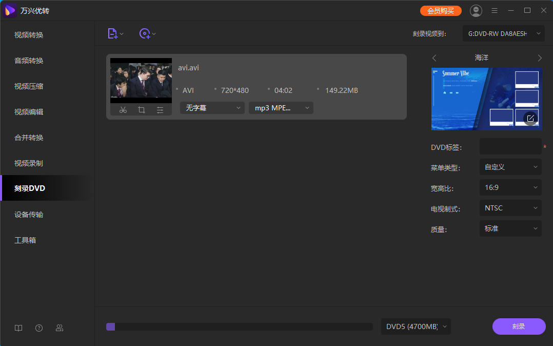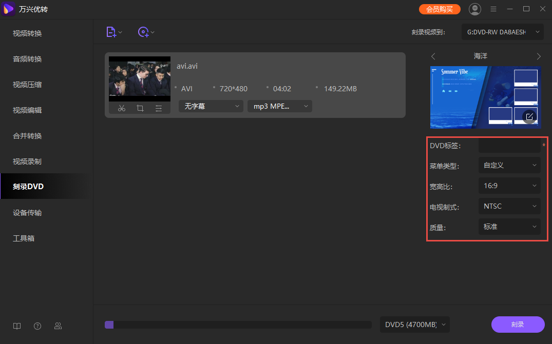 在DVD刻录机驱动器中插入空白DVD,启动日韩精品久久久久优转,并使用以下方法为DVD刻录视频: