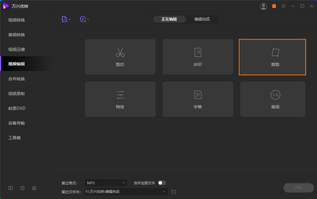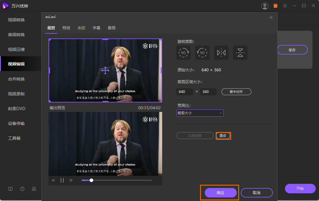 启动日韩精品久久久久优转并选择视频编辑板块。点击裁剪部分以获得裁剪窗口。