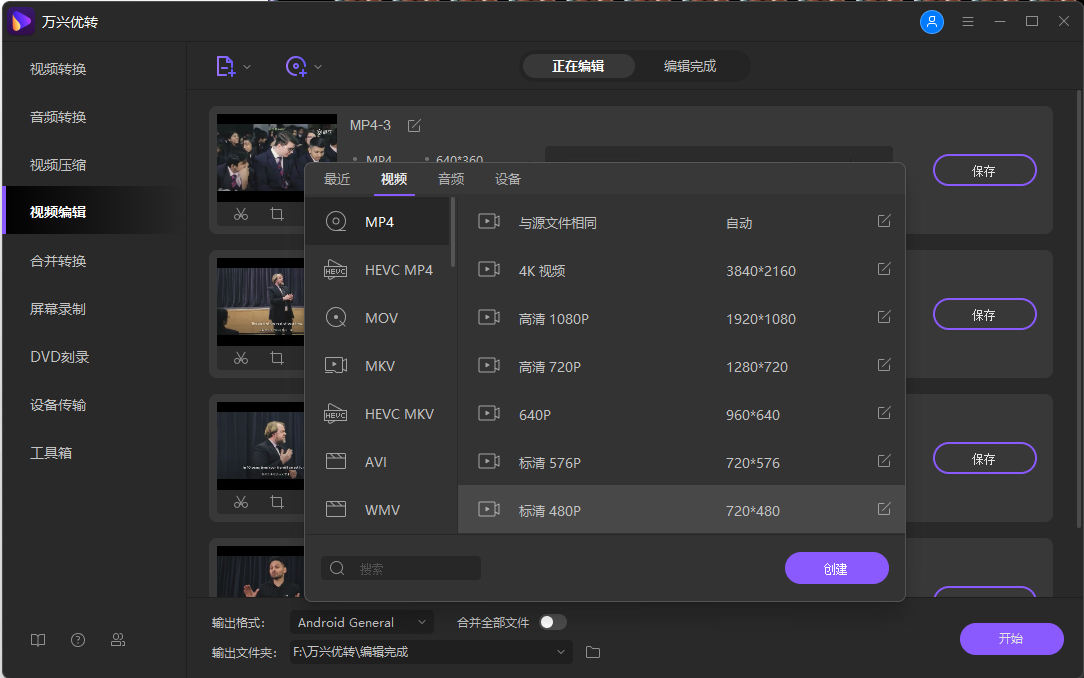 现在单击输出格式旁边的下拉按钮,选择输出视频的格式,然后单击“开始全部”继续。