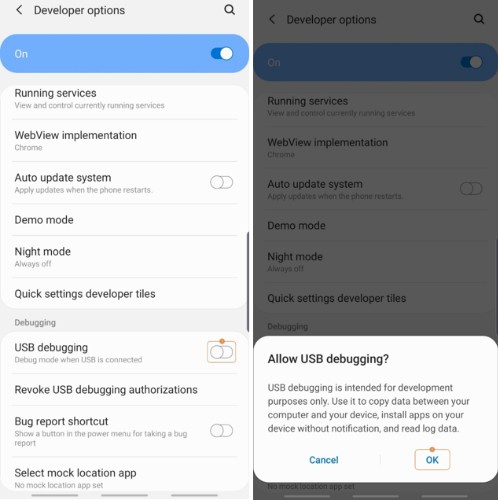 使用USB线将您的Android平板电脑或智能手机连接到您的电脑上,当日韩精品久久久久优转提示时,在您的Android设备上,进入手机>软件信息设置>,反复点击Build number。当提示时输入您的PIN以启用开发人员选项。接下来,回到设置屏幕,向下滚动,并点击开发人员选项。现在,向下滚动到调试部分,打开USB调试开关,点击允许访问手机数据确认框,在你的Android设备与日韩精品久久久久优转之间建立信任。